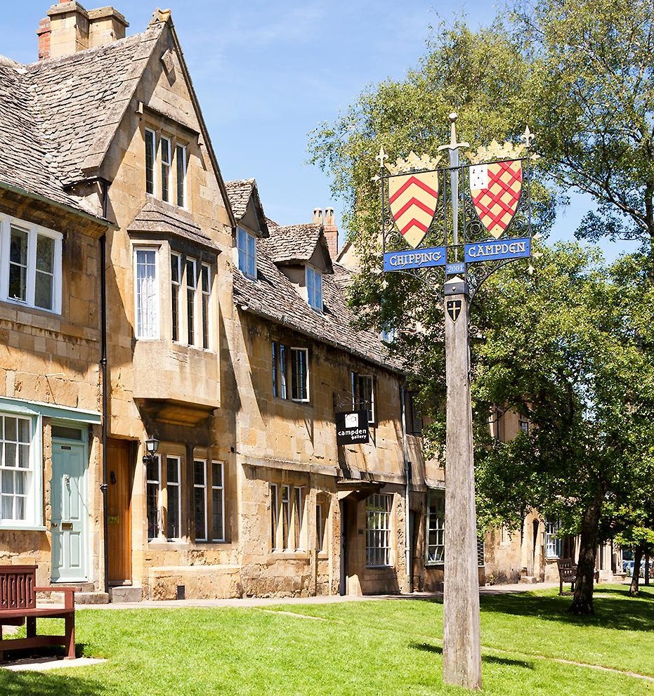 Frequently described as the ‘jewel in the crown’ of the Cotswold towns, Chipping Campden is also one of the best preserved and most historically important towns. A planned town of the late 12th century, its original layout can still be traced along the High Street following the line of an important trading route. The ancient word ‘chipping’ refers to the market. The Market Hall, was built in 1627 by Sir Baptist Hicks for the sale of cheese, butter and poultry.